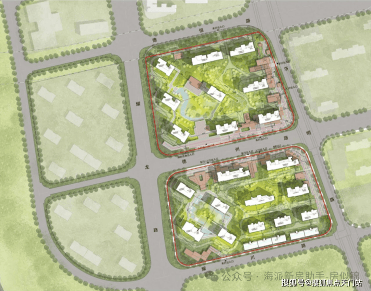 下沉式庭院+会所将是项目最醒目的标签之一。用地图红线标注的庭院范围来看,其占地近地块总面积的1/4——按整个地块约4万方计算,下沉会所面积将近1万方。