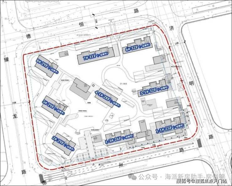 根据项目规划设计方案,07-01地块拟建9幢超高层住宅,其中7幢百米高层住宅(28-32层)、1幢83米高住宅(25层)和1幢86米高住宅(26层),若干社区配套用房以及部分商业设施,共计规划约794户。建面120㎡以下中小套型占比要求不低于40%。